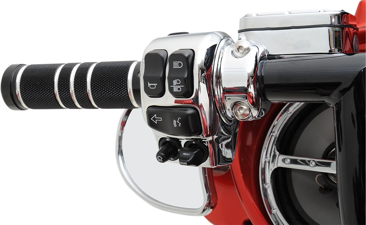 - Die-cast aluminum switch housings have radiused edges, OEM-style clamps, smooth tops and a chrome finish for a clean look.