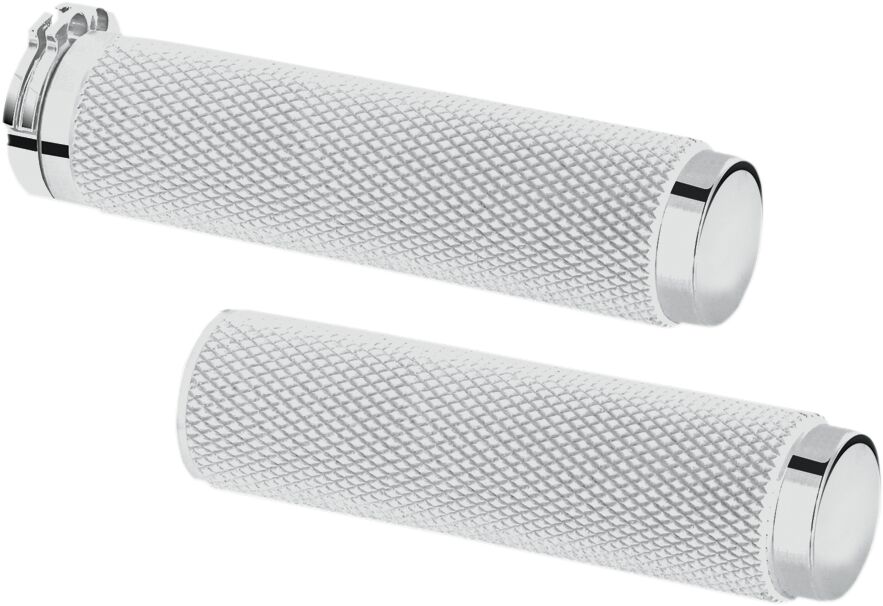 Billet Grips- CNC-machined from billet aluminum and chrome plated.- Feature a coarse knurl for excellent grip.- Easy to install in approximately 30 minutes with common tools.- Made in the U.S.A.