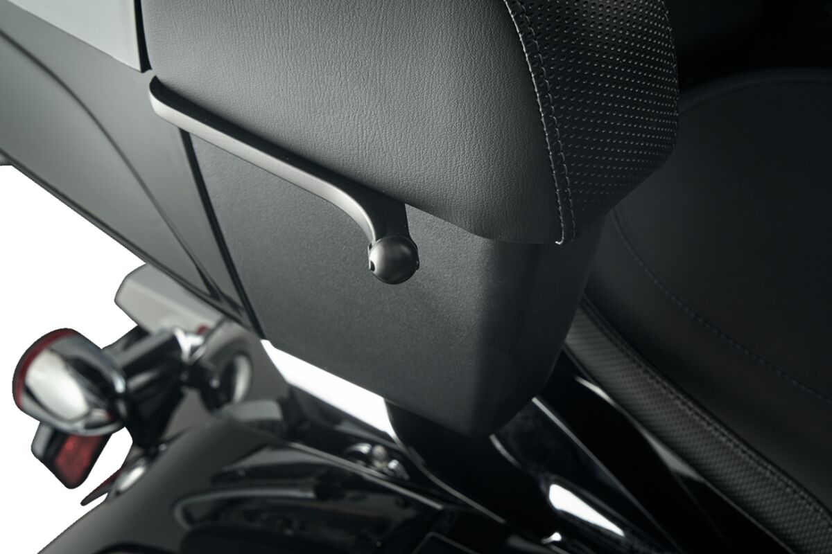 - Powder coated black, inconspicuous when mountedRequires Indian-branded Touring Trunk (Not for use on low-profile trunks from Indian).Not compatible with Indian passenger arm rest pads/accessory kits.