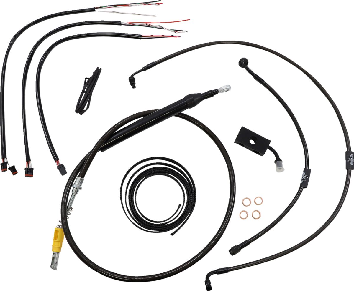 - Kit includes the correct length braided brake/clutch lines and wire extensions to complete a handlebar swap.