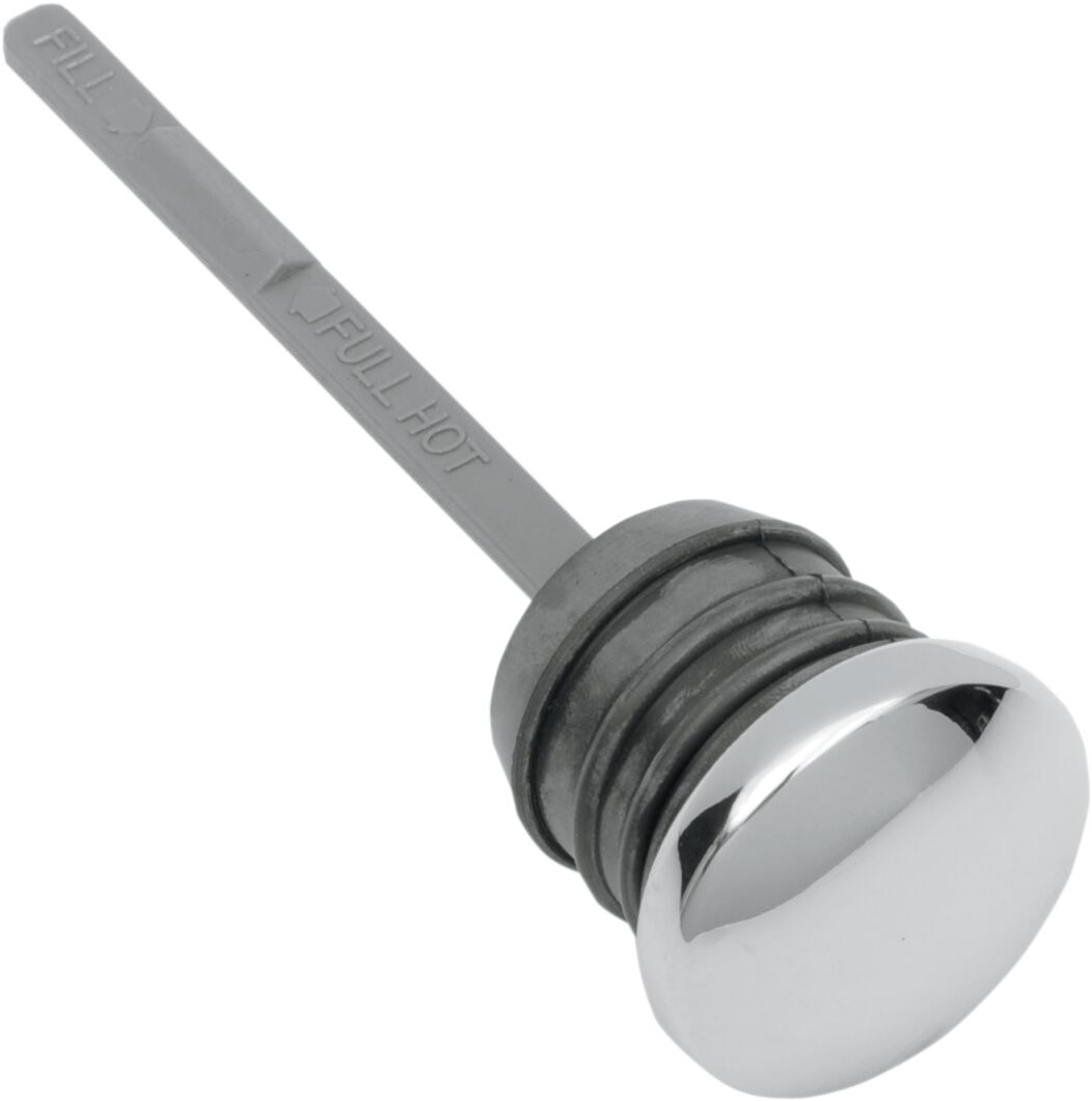 Oil Tank Dipstick- Features a 4.375" long swiveling dipstick.- 1.45" diameter rubber plug body with a 1.75" diameter chrome cap.- Fits most '00-'17 Softail style oil tanks