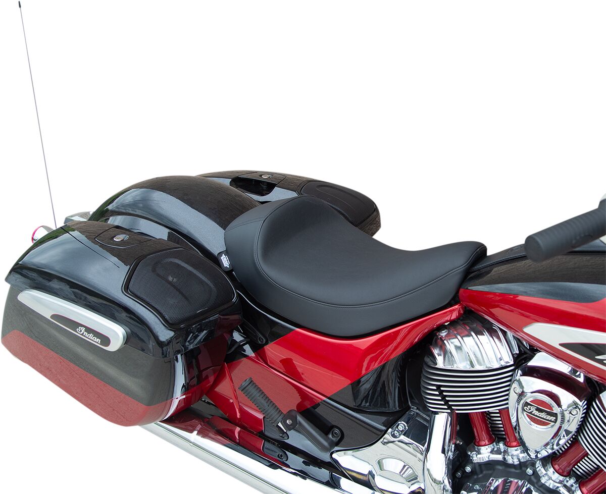 Solo Seat- This seat moves the rider back 1-½" lower compared to the factory seat.- Seat is made narrow up front for better leg clearance to ground contact.- Includes all mounting hardware