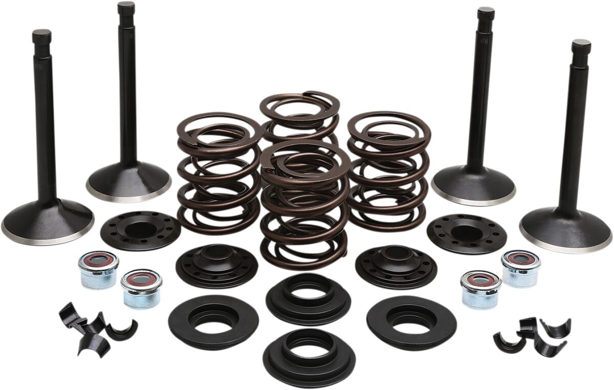 Engine Valve Kit- Kits include KPMI® or equivalent valve spring kit, a full set of Black Diamond™stainless steel standard size valves and are black nitride coated, H.T. (Heat Treated) steel valve keepers and valve stem seals (where applicable) for engine applications listed.