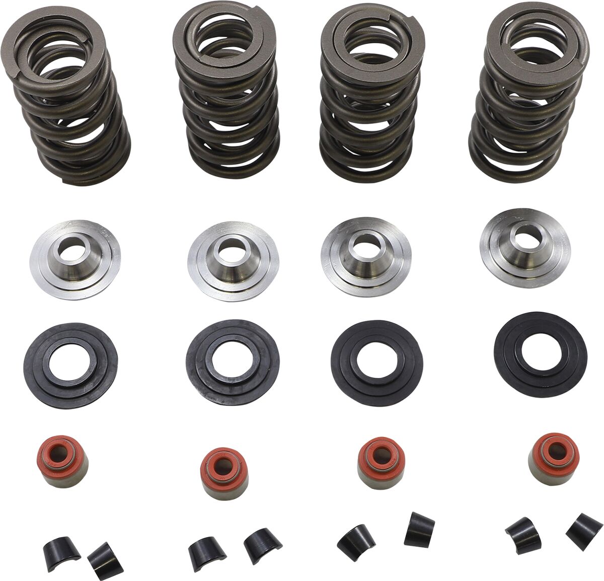 - Made in the USANot for RH Sportster.Kit Includes:• 4x CrSi Valve Springs• 4x Titanium Retainers• 4x H.T. Steel Keepers• 4x H.T. Steel Basewashers• 4x Viton® Seals