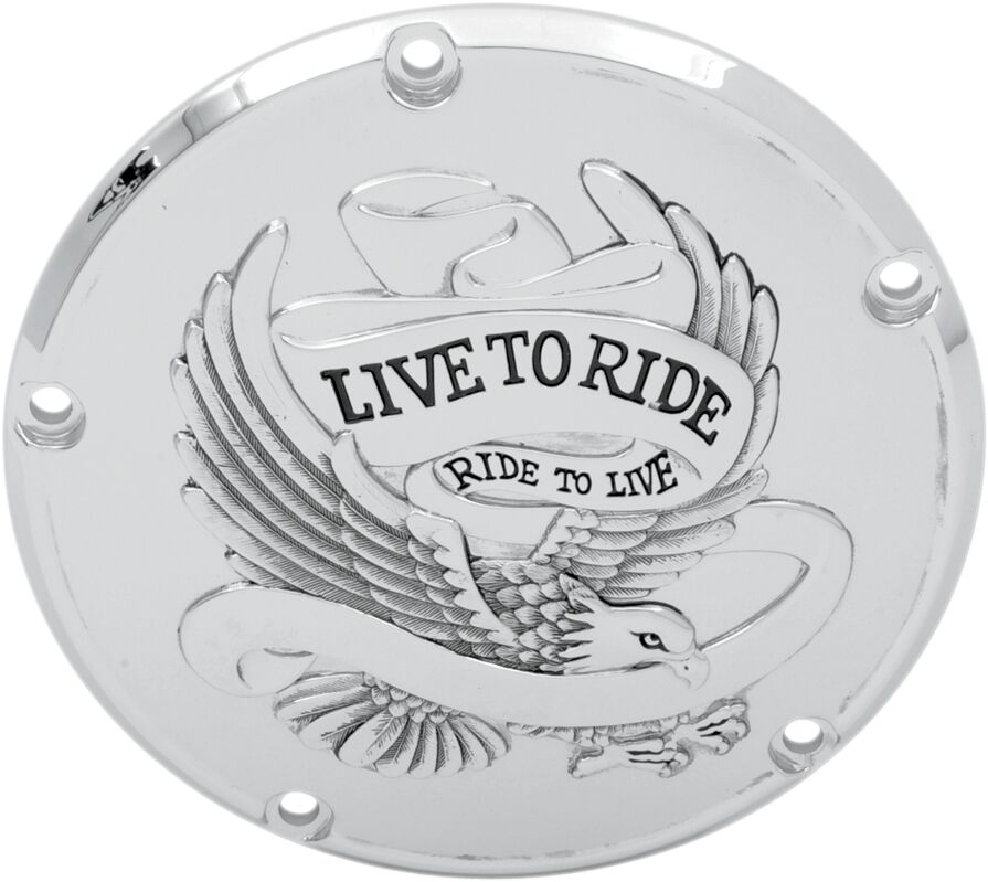 Live To Ride Derby Cover- Feature a detailed plated eagle and banner.
