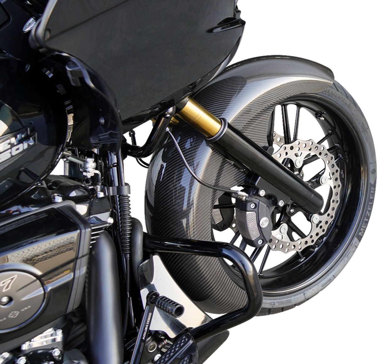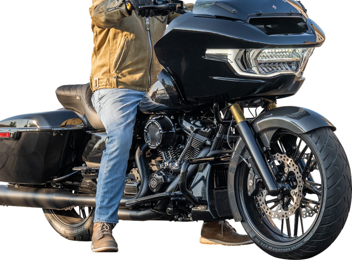 - Full-length carbon fiber front fender for 21" x 5.5" fat/wide front wheels.