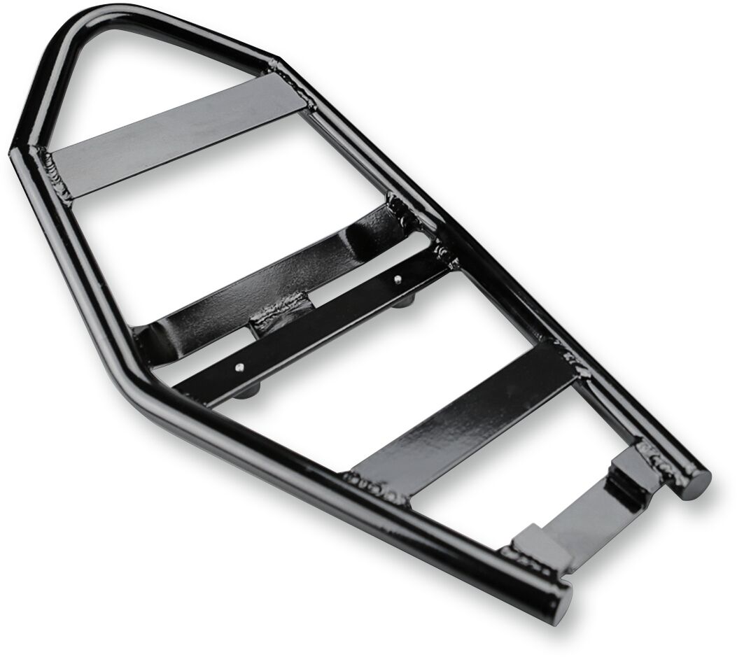 - Slides under front seat mount tab and bolts to the fender frame tube; no welding required.