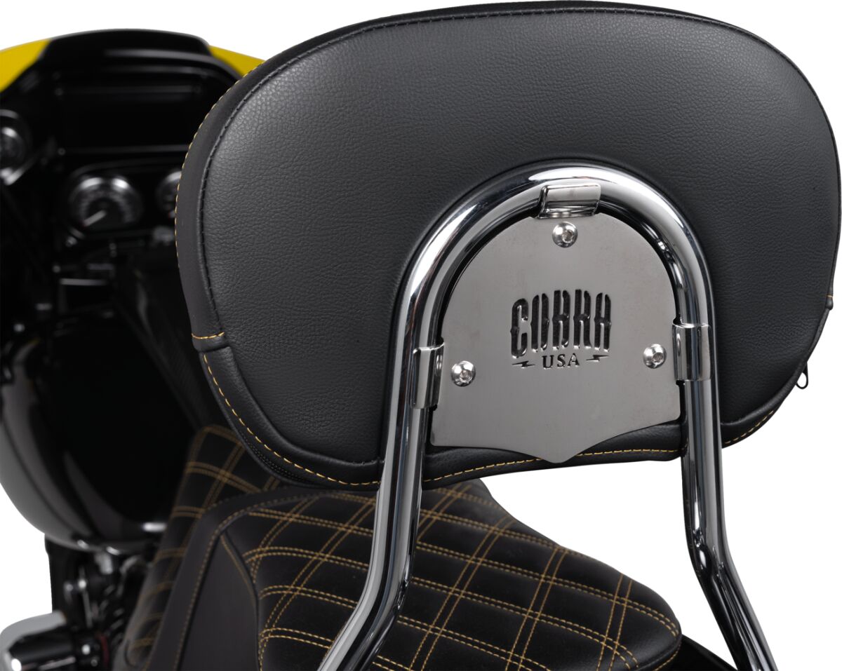 - Backrest works with the standard H-D detachable docking kit or use with the Cobra docking kits (sold separately).