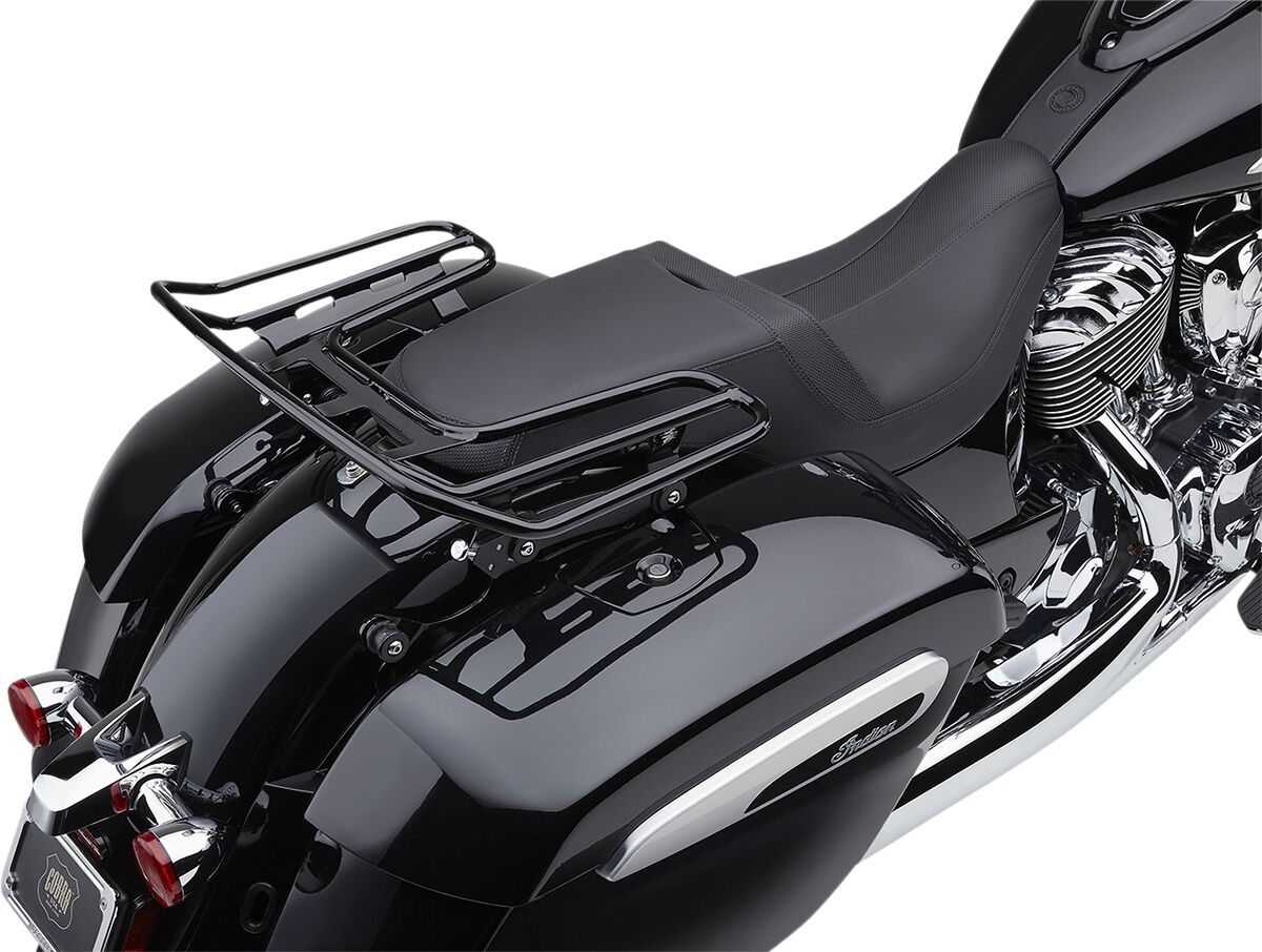 - If aftermarket seat is not Saddlemen or Lucky Daves step ups, then look carefully at the measurements of the opening to ensure the rack will fit around your bike’s seat.For bikes equipped with Indian Rogue seats only. Requires mounting hardware.