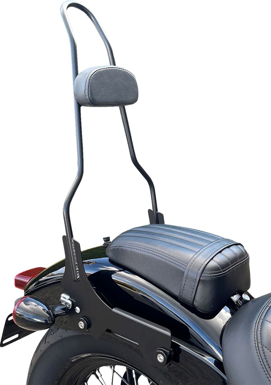 23 Quick Release Sissy Bar- Quick detach mounting system.- Powder coated finish for longevity.- Pad included.- Docking hardware available separately.- Made in the USA"
