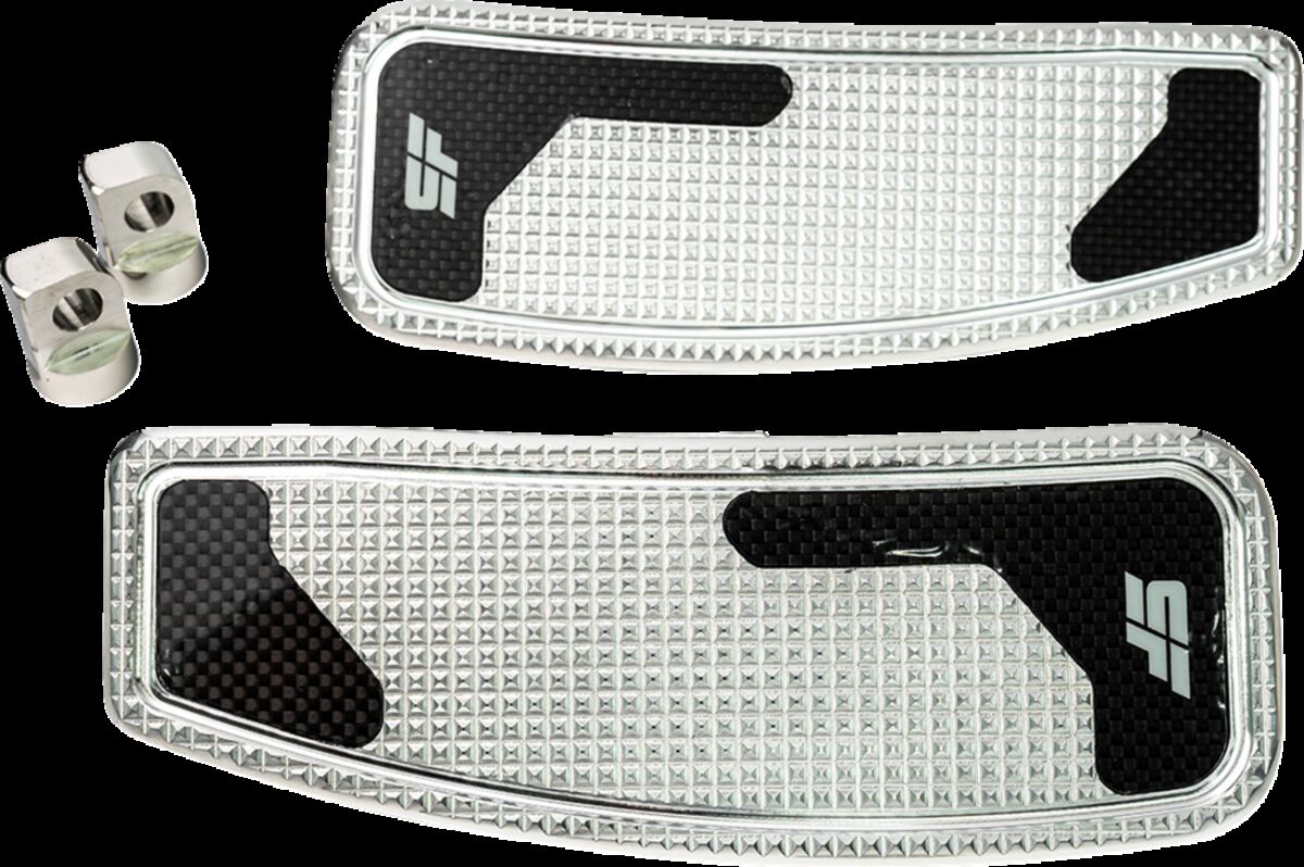 - Mini floorboards sold in pairs are constructed of billet aluminum with diamond cut.