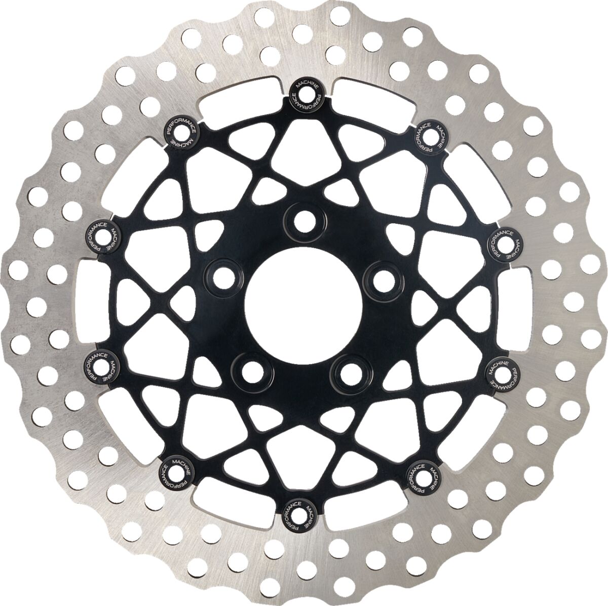 - Wave cut braking surface is drilled in a sweep pattern for optimal heat dissipation with a reduction in weight.