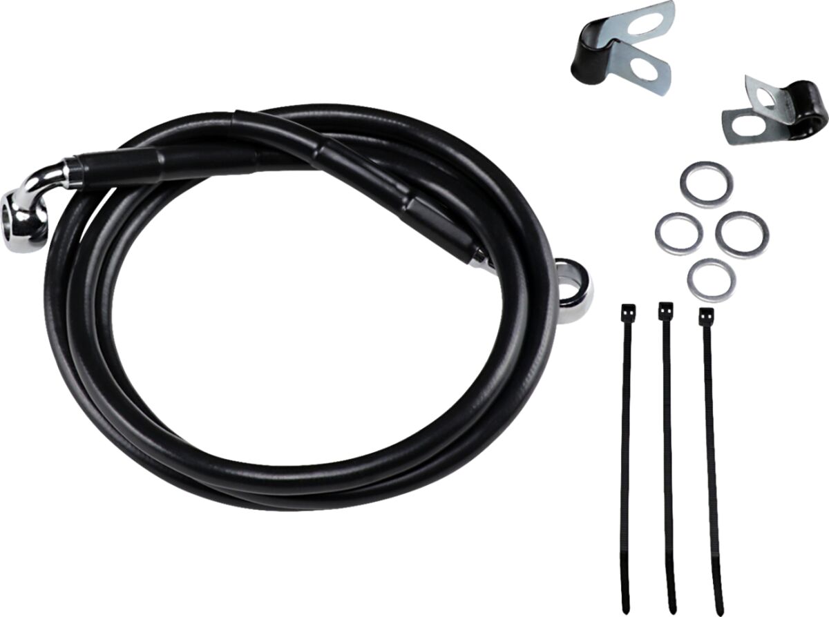 DRAG SPECIALTIES FRONT BRAKE LINE BLACK VINYL COATED STAINLESS STEEL EXTENDED 4