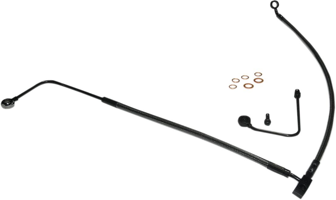 Designer Series Front Lower Brake Line Kit- If replacing the stock lower brake line assembly on '18+ dual disc Softails, an adapter is NOT needed. Using AN-3 fittings, the upper line connects directly to the Magnum lower assembly.