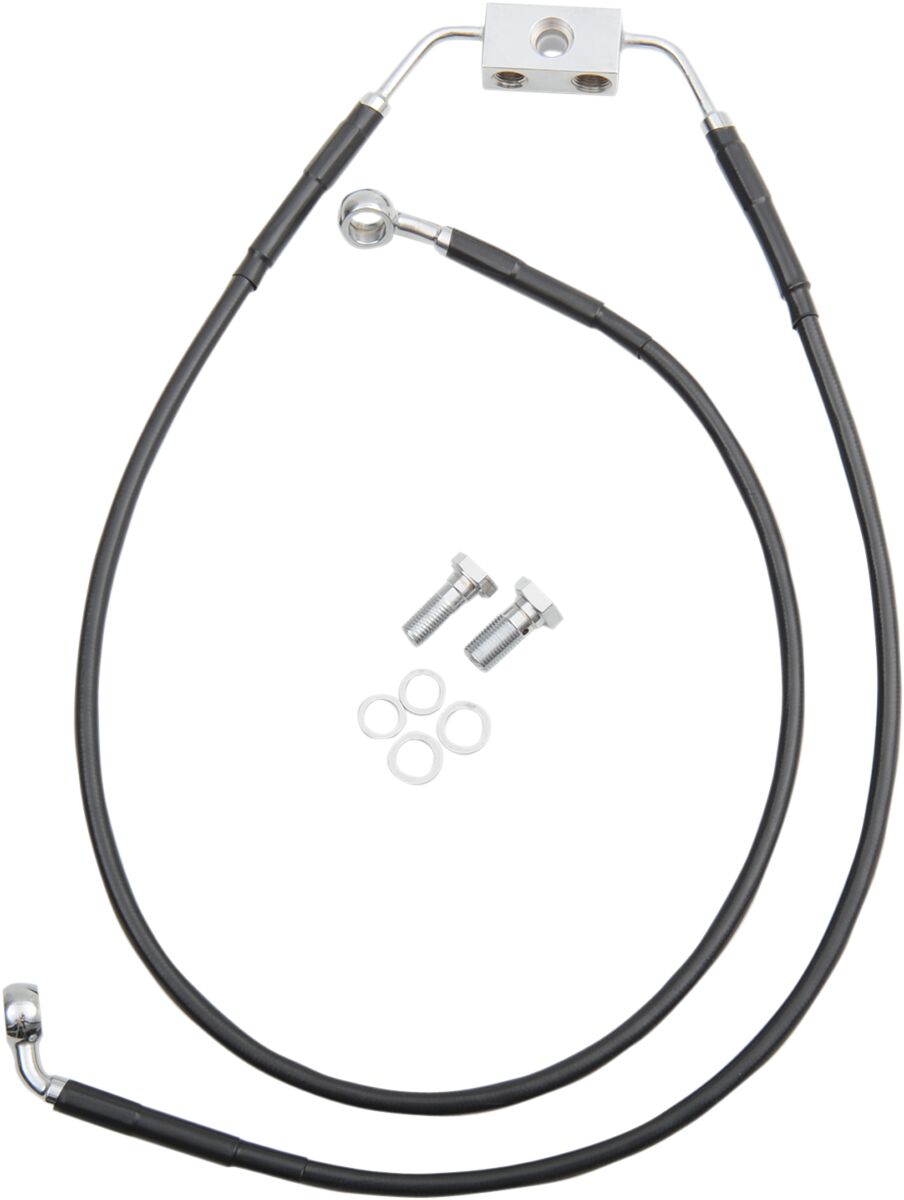 17413806 - DRAG SPECIALTIES BRAKE LINE STAINESS STEEL BLACK COATED FRONT/UPPER/LOWER EXTENDED +8