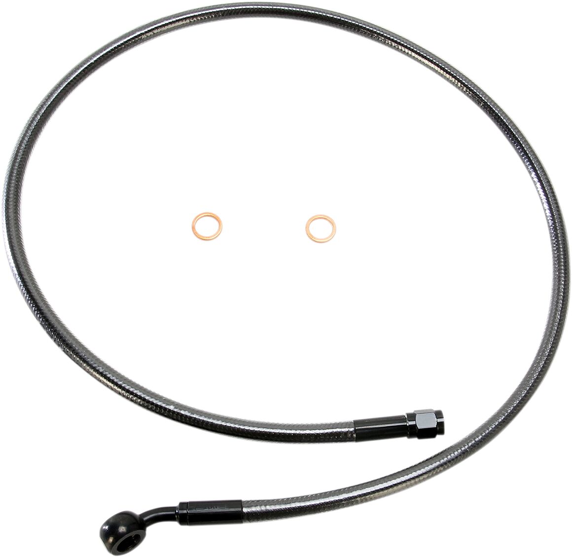 - Non-stock applications require taking a measurement for upper brake line length and banjo angle to ensure correct fitment..