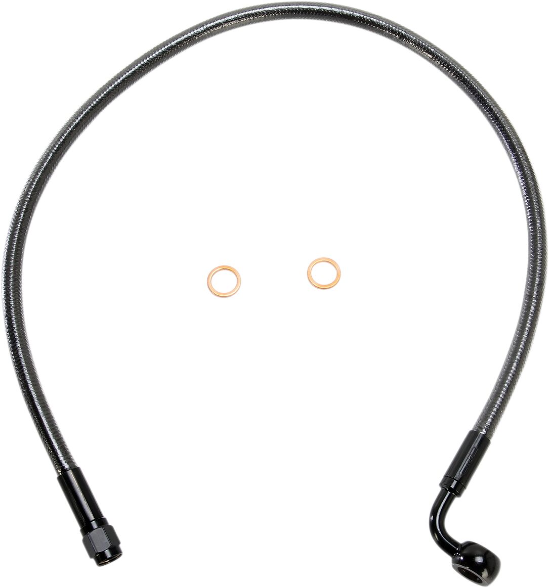 - '18+ Softail – Upper line replacement when reusing the stock lower brake line. (adapter required) Lengths are determined by using the stock master cylinder line for a guide. Measure from the lower brake line manifold where the upper line attaches, up to the master cylinder. From that measurement subtract 1.5" for the adapter and round up to the next number to determine upper line length..