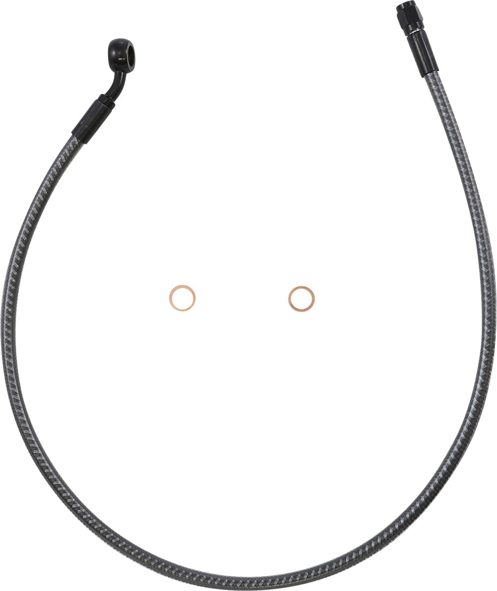 - Non-stock applications require taking a measurement for upper brake line length and banjo angle to ensure correct fitment..