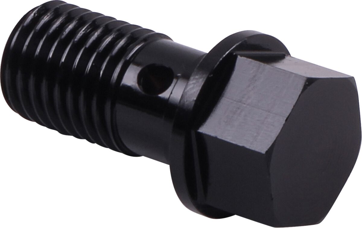 Banjo Bolt- 3/8-24 banjo bolt has a 7/16" shoulder.- Used to attach a 7/16" banjo fitting to caliper or master cylinder that accepts a 3/8"-24 banjo bolt.- Made in the U.S.A."