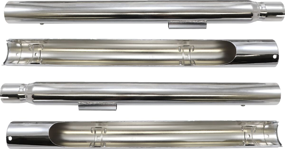 - 1.75 exhaust tubing provides improved exhaust flow, and the 2.5" heat shields give the classic straight pipe look.