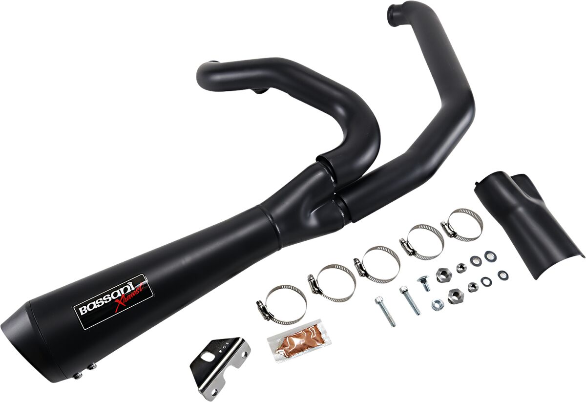 Road Rage 2:1 Short Exhaust System- Stepped headers merge into a true reverse-cone 4 Megaphone Can muffler.