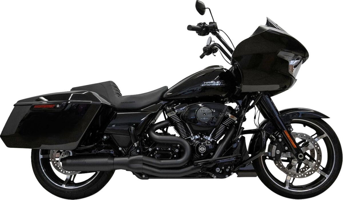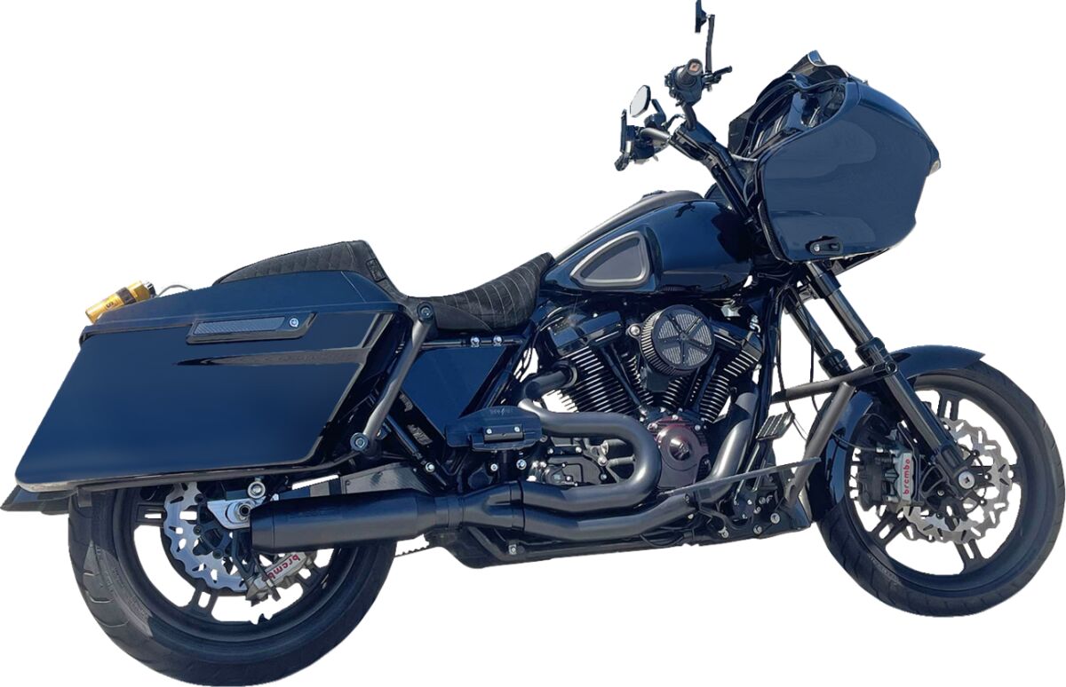 2-into-1 Mid-Length Super Bike Exhaust System- Hand MIG-welded headers with black powdercoat finish.