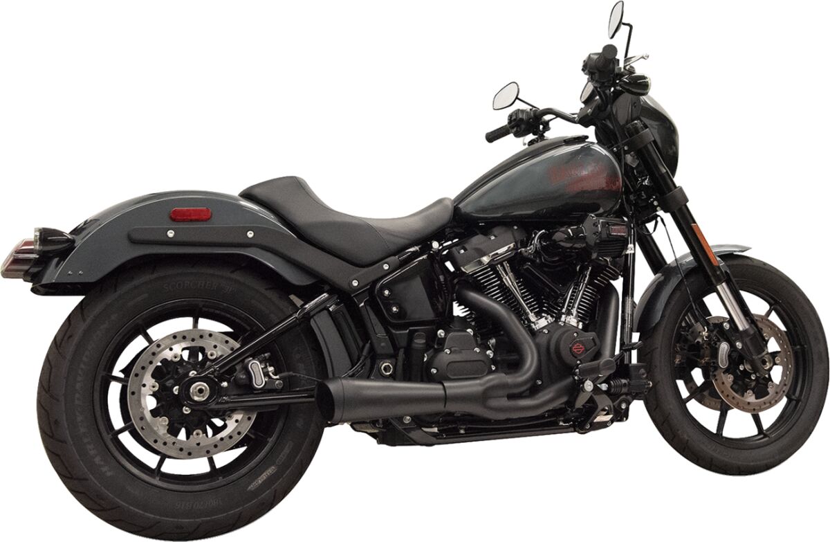 2-into-1 The Ripper Exhaust System- Designed with a louder, more aggressive tone than the Shorty Road Rage M-Eight Softail exhaust systems.