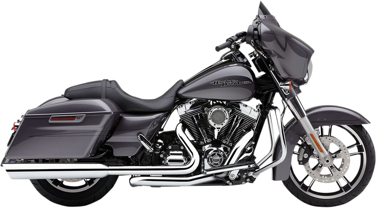 - Uses a 2.25 perforated core for its traditional and recognizable Harley sound.