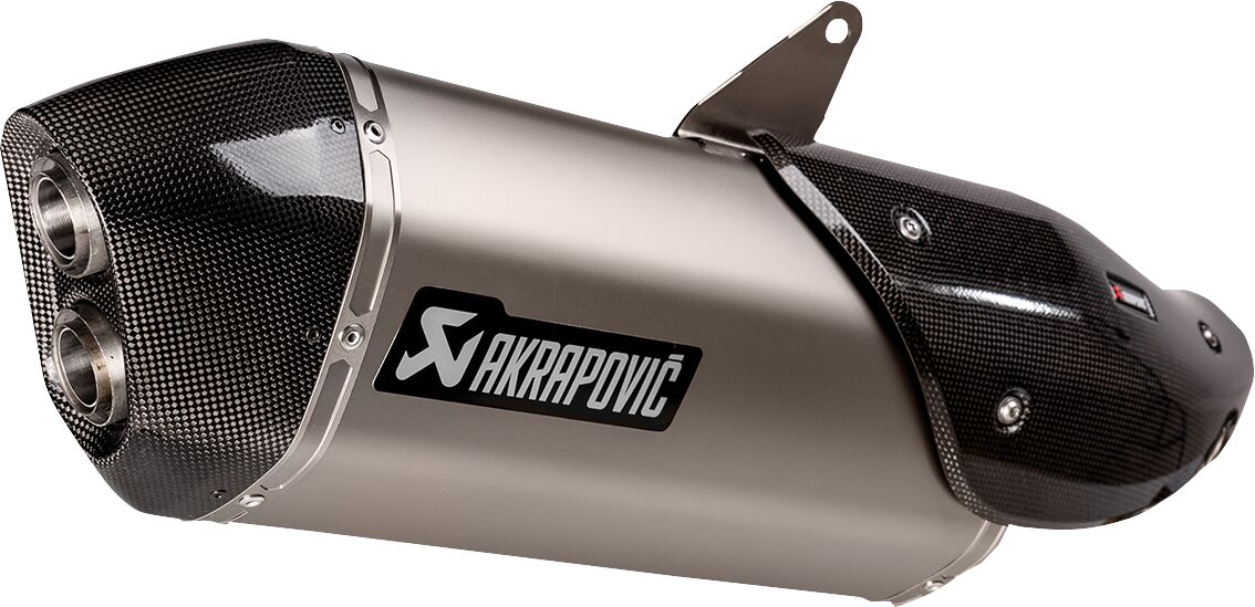 Slip-On Line Muffler- Created to fit seamlessly within the lines of the bike and utilizing a design used on Akrapovič products for the Adventure bike sector, this highly durable exhaust has a sandblasted high-grade titanium muffler outer sleeve.