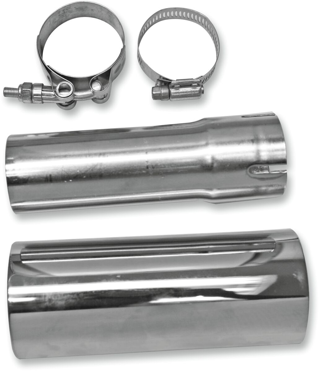 Muffler Adapter- Fits between the stock collector headpipe and muffler on stock OEM 2-into-1 systems.