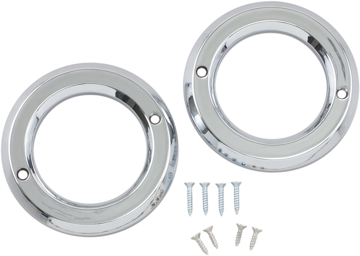 Chrome Accent Rings for Trax Fog Lights- Increase the style and class of the trike.- Enhance fog light features of the Tri Glide trax.- All necessary mounting hardware and instructions included.- Made in the USA
