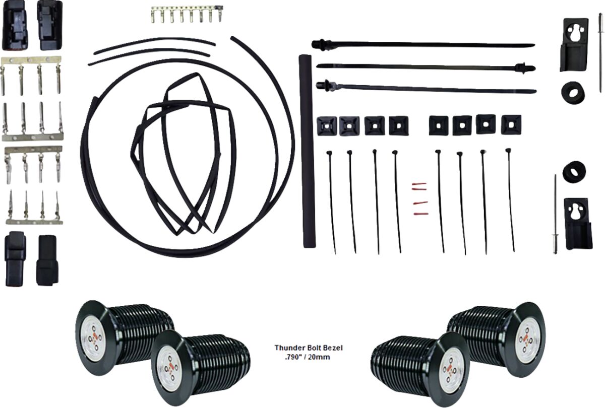 - Each kit includes two sets (4) taillights, a wiring kit, pins, and plugs.