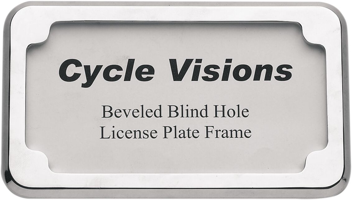 Beveled License Plate Frame- Aluminum construction.- Blind-hole design for a clean line.- Fits all 4 x 7" license plates.- Made in the USA"
