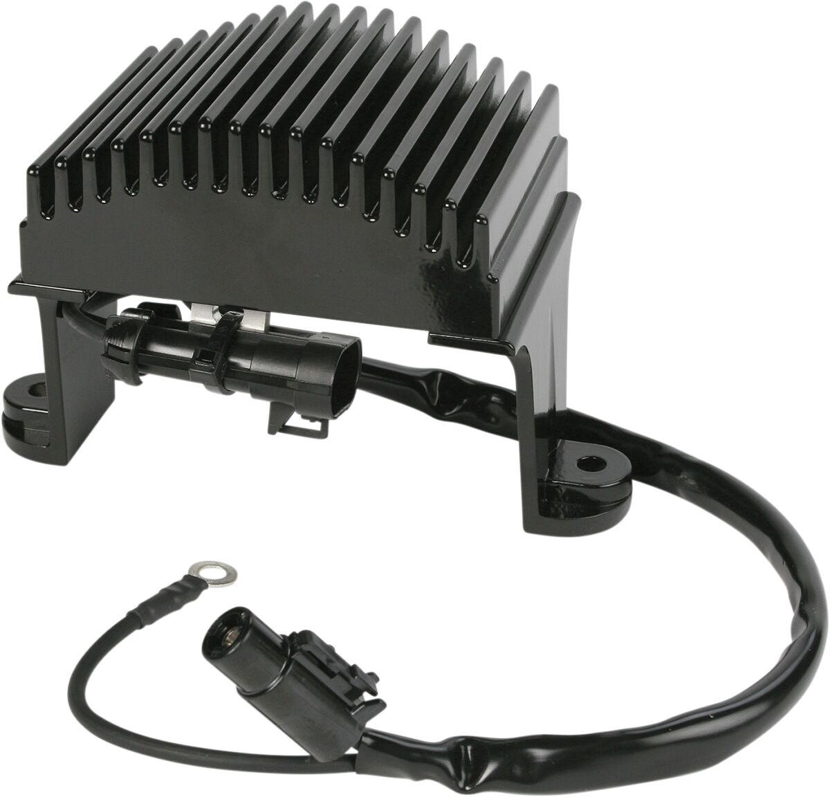 Rectifying Regulator- Controls voltage on Harley-Davidson and Buell alternators, unlike other rectifiers or regulators that dump to ground and cause maximum stator current and higher temperatures.