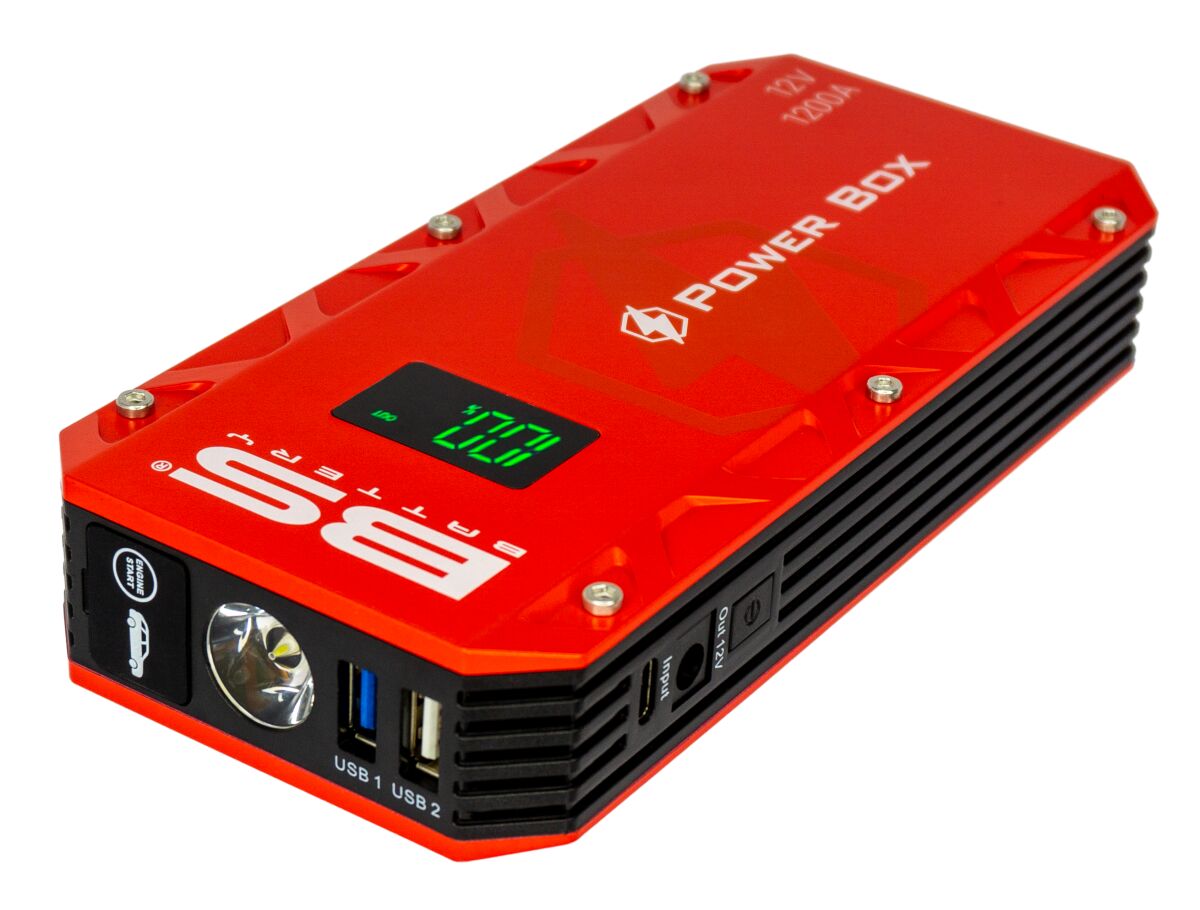 Booster Power Box PB-02- The Power Box PB-02 is a perfect back-up power solution rated at 1200A (peak current), able to deliver 600A for jump starting vehicles (motorcycles, cars, boats and more…), charge USB devices (smartphones, tablets…) and offer emergency lighting..
