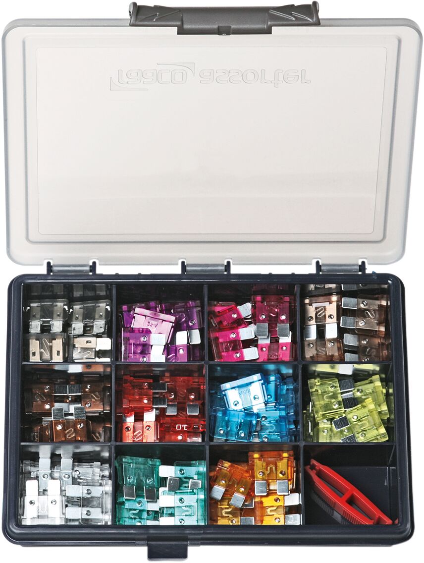 - Standard fuses kit contains five of each 1A and 2A, 10 of each 3A; 4A; 5A; 7,5A; 10A; 15A; 25A; 30A; 40A plus a fuse puller