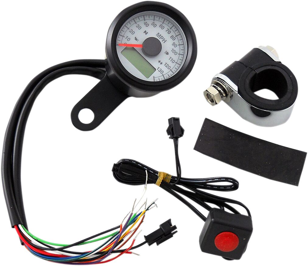 22100421 - DRAG SPECIALTIES ELECTRONIC SPEEDOMETERS WITH INDICATOR LIGHTS 1-7/8" MINI PROGRAMMABLE 120 MPH