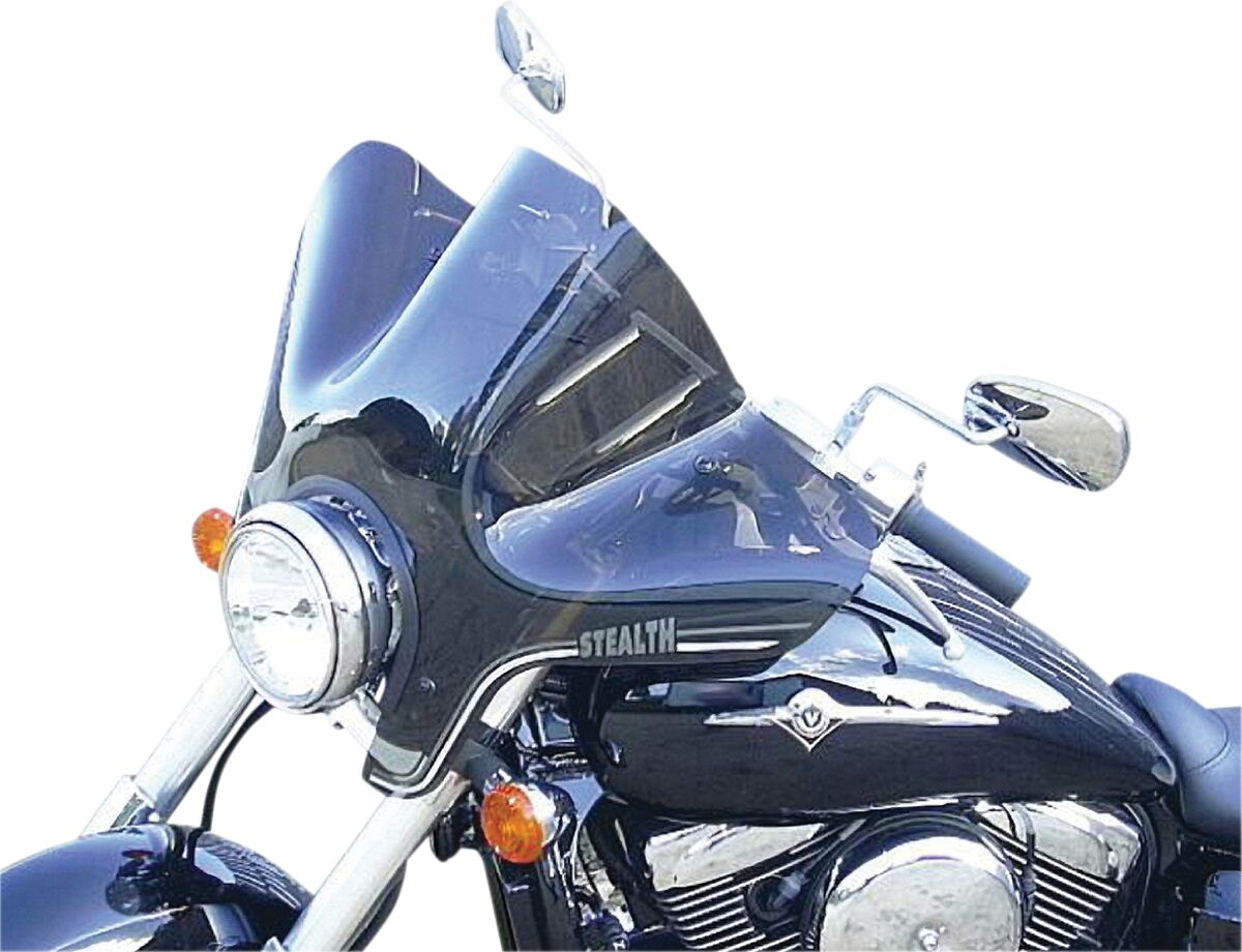 SS-20 Stealth Windshield- Provides excellent protection with an eye-catching look.- Features flowing, sculptured curves and anodized aluminum handlebar clamps that fit 1 handlebars.- Made in the U.S.A."
