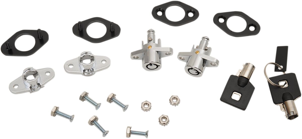 Saddlebag Lock Kit- Fits most soft-side leather saddlebags.- Kit includes two locks, two keys and all necessary mounting hardware.- Two kits recommended for saddlebags with dual straps.- Steel
