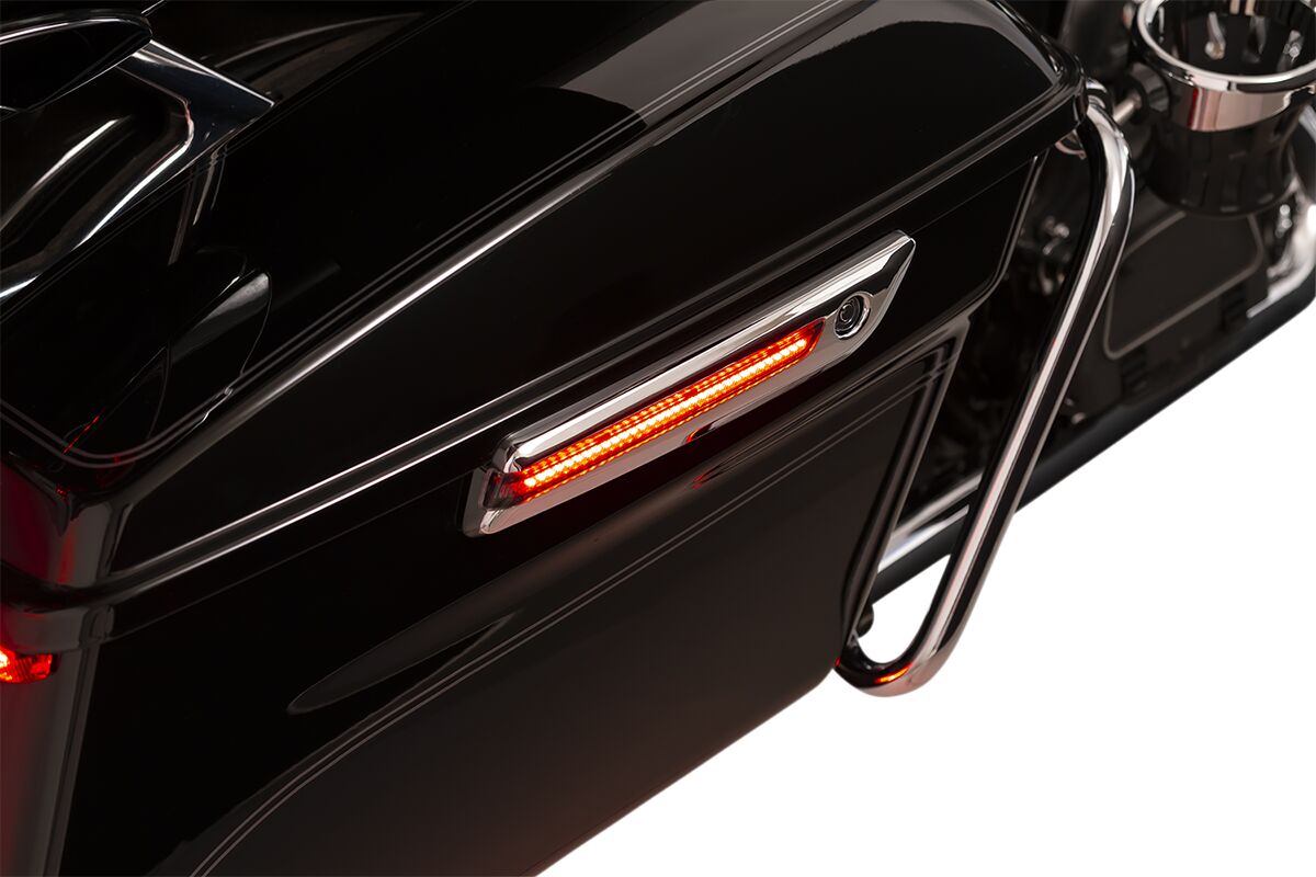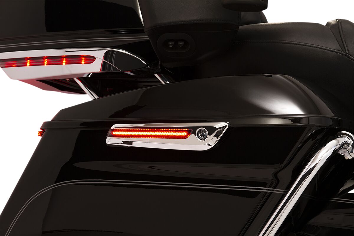 LED Saddlebag Hinge Covers- Replaces the hinge cover and reflector to transform the look of your saddlebag.