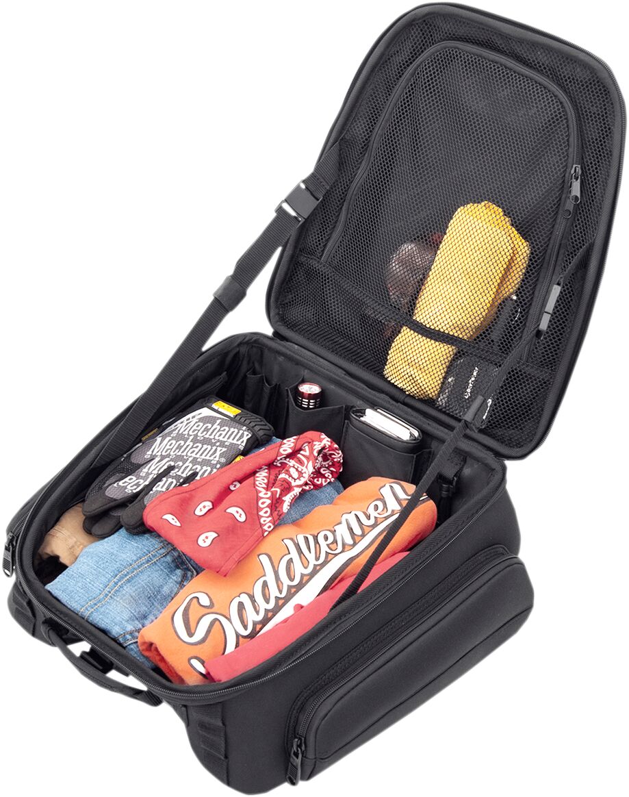 - Designed to fit perfectly between the rider and tour pack.