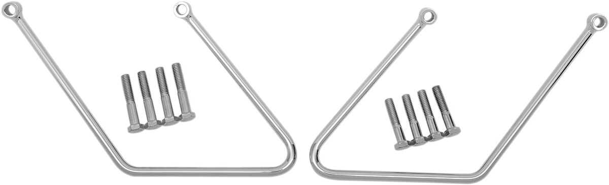 - Chrome-plated steel brackets hold throw-over saddlebags away from brake caliper and swingarm.