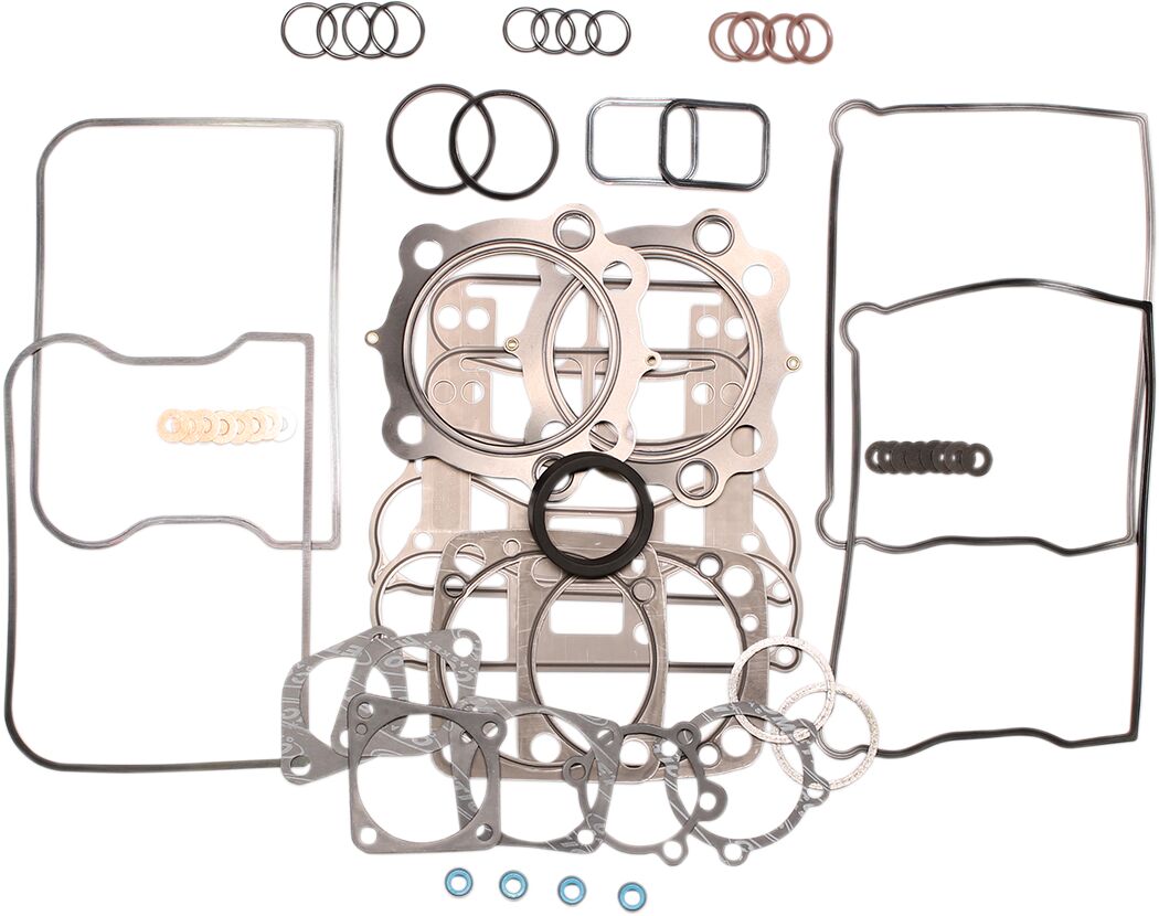 - Set contains all the necessary gaskets, seals, and O-rings to rebuild the top end from the cylinder base upward.