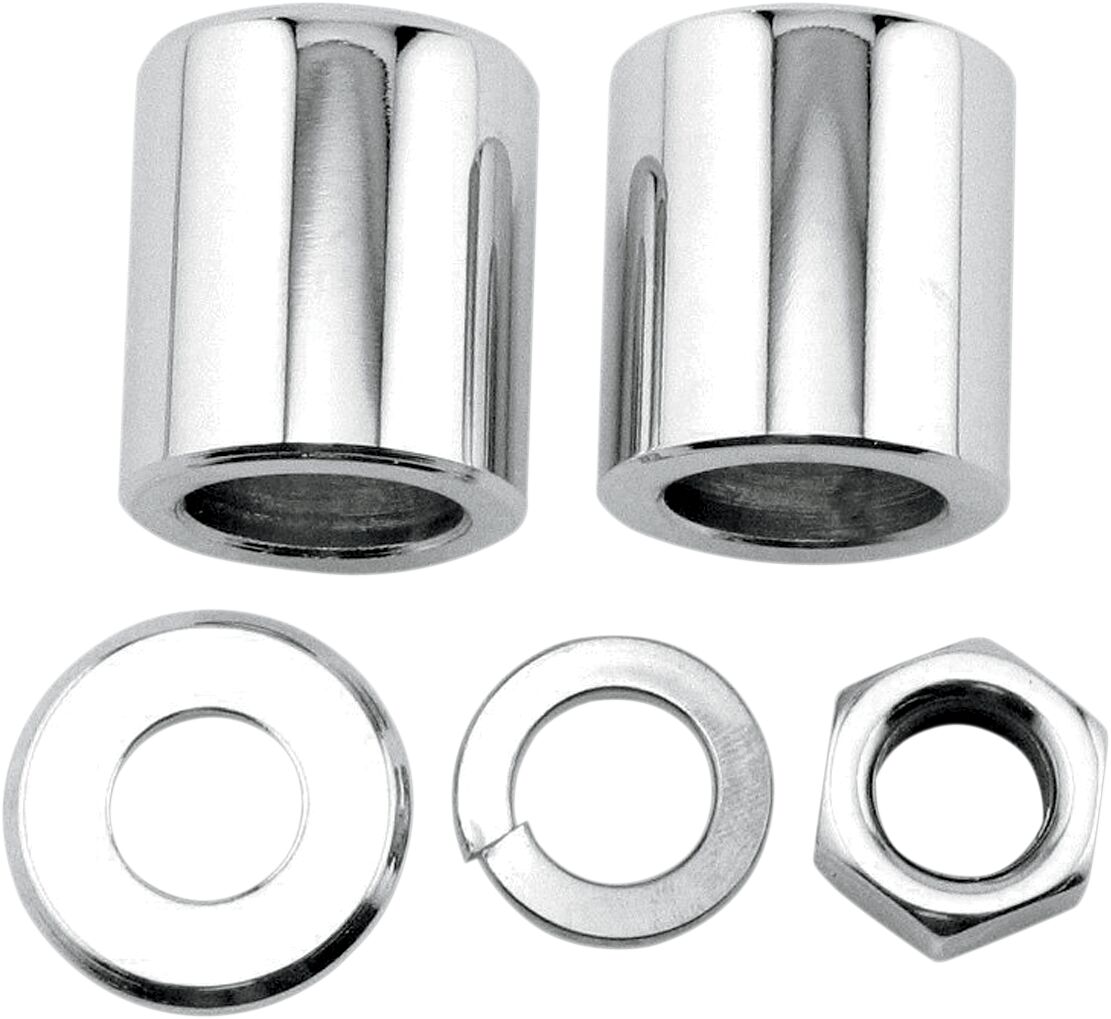 - Kit includes polished/chrome-plated finish spacers, nuts and machined washers.