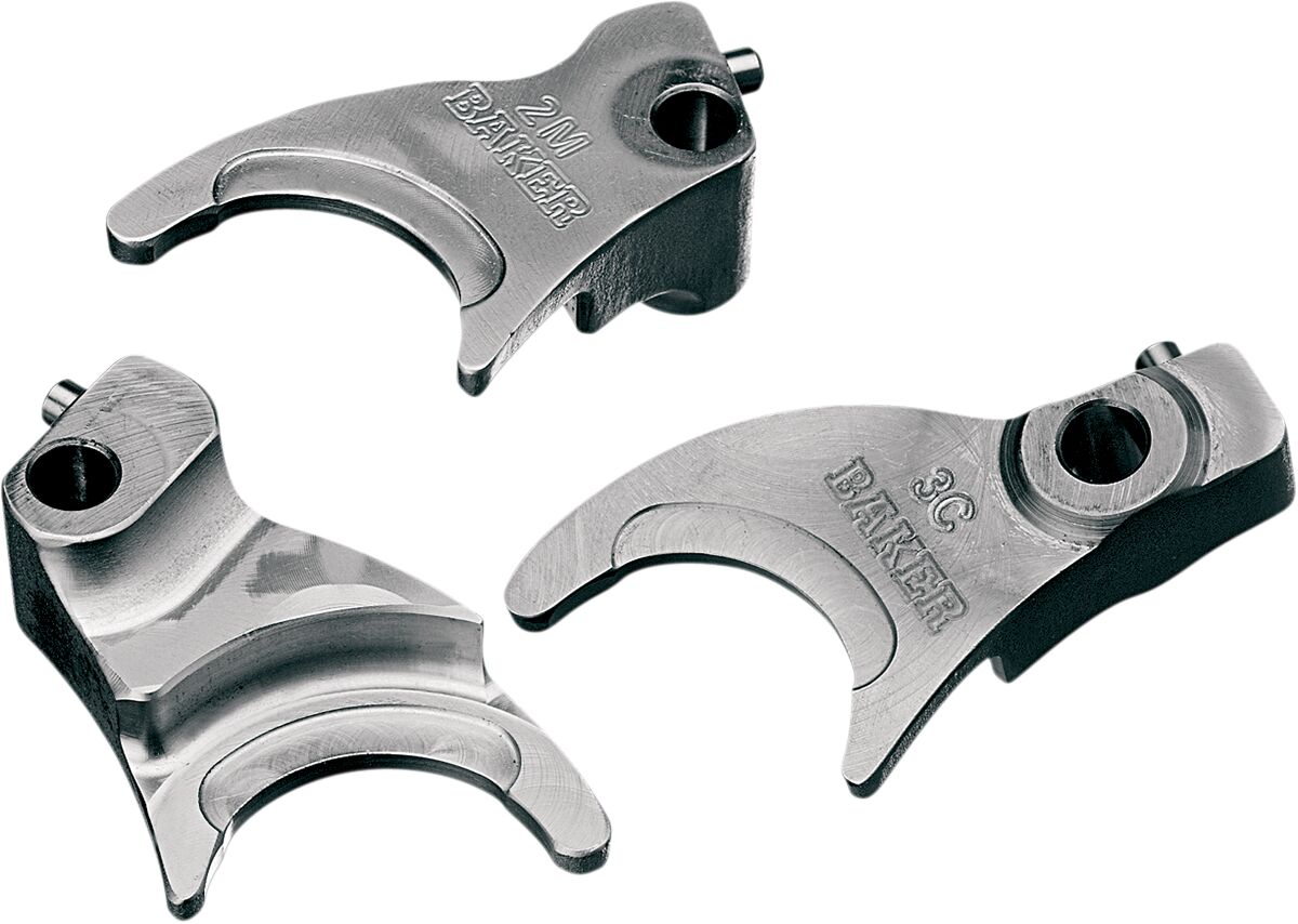 Big Twin 5-Speed Shifter Forks- Machined from billet steel and then hard chromed.- Cross section is three times thicker than stock forks.- Sold as a set (three shifter forks).- Made in the USA