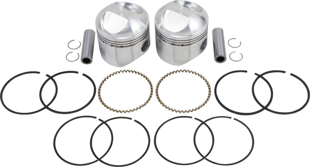 - Kit Includes pistons, rings, retainer clips and chrome piston pins.