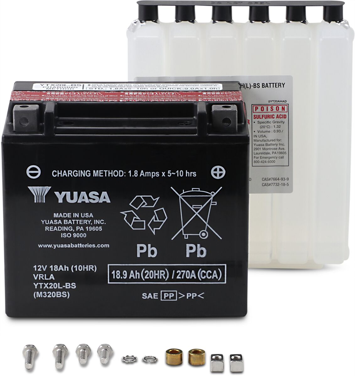 YTX20LBS - YUASA BATTERY YTX® 12V 172,72 MM X 86 MM X 155 MM LEAD ACID MAINTENANCE FREE REPLACEMENT BLACK