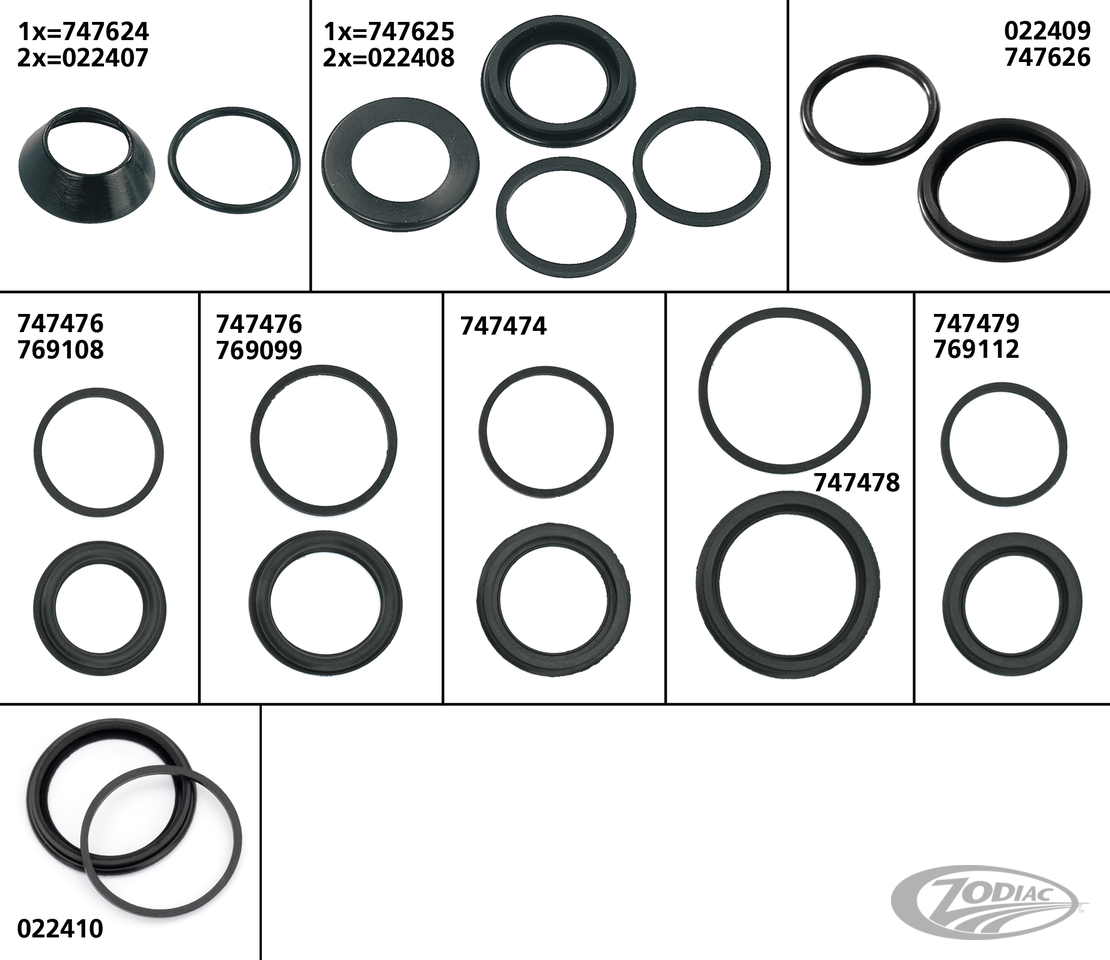 Staubmanschetten und Dichtringe für einen vorderen Bremszange, geeignet für Einscheiben Sportster 1974-1977 und FX 1974-1977, Daytona Global (OEM 44277-74 & 44278-74)