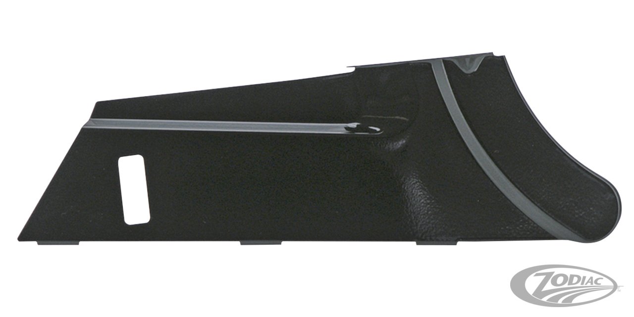 Diese unteren Beltabdeckungen für alle FLH/FLT Touring ab 1997 sind sehr einfach zu montieren da sie einfach über dem originalen Schutz angebracht werden. Erhältlich sind diese Abdeckungen von Zodiac in schwarzer und verchromter Ausführung.