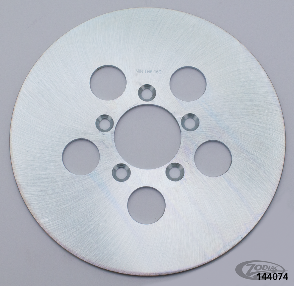 Für alle FX, FXR und Sportster 1977-1983 vorne mit zwei Bremsscheiben Aussendurchmesser 10", Zentrierbohrung 2 13/32", Bohrungen 5/16" für Senkkopf (OEM 44137-77A), Stahl, massiv